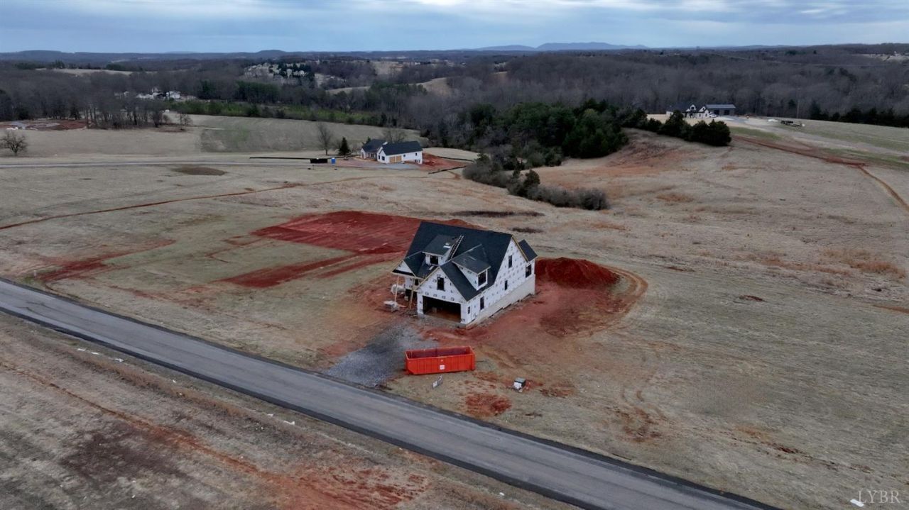 Stunning two-story farmhouse with a rocking chair front porch and spectacular Mountain Views in a prime location in Bedford. This beautiful home offers over 2,200 sq. ft. with a spacious great room featuring vaulted ceilings and a floor-to-ceiling brick/shiplap electric fireplace. Chef's kitchen with custom shaker cabinets, quartz countertops, gas cooktop, and a large walk-in pantry. The main level includes a dining room with breathtaking views, laundry room, a full bathroom, and a spacious primary suite with a large walk-in closet, double vanity with quartz countertops, and a large stunning tiled walk-in shower. The second floor offers three bedrooms and a full bathroom. The home also includes an unfinished walkout terrace level with great potential. Don't miss this opportunity call today for more information!