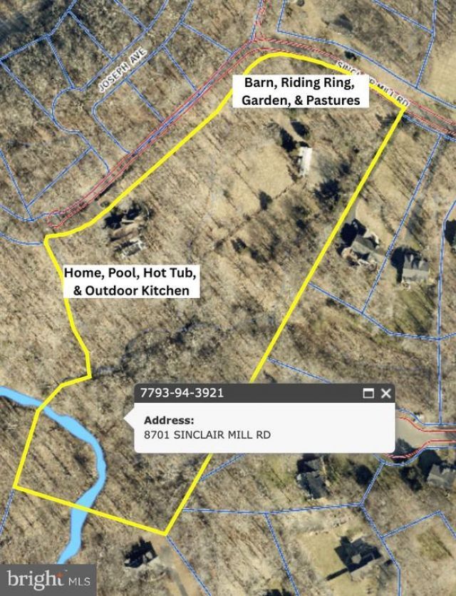 8701 Sinclair Mill Rd is tucked away on a quiet cul de sac in Manassas. An extraordinary estate property built in 2005 & set on 10 picturesque acres that blends elegant architecture with a resort inspired atmosphere. Soaring ceilings exceeding 12ft across 2 levels & a 20ft foyer with wrapping staircase, create a sense of openness & light, while thoughtful design elements throughout the home provide both grandeur & warmth. A 4 car garage, expansive outdoor living spaces, pool, hot tub, equestrian amenities, & scenic Long Branch stream flowing toward Lake Jackson / the Occoquan Reservoir are just a few of the standout features of this recently refreshed property. The peaceful Long Branch stream runs through the back of the property creating a serene landscape that changes with each season. Backing directly to Doves Landing, protected county parkland, offers an exceptional connection to nature rarely found in such a convenient NOVA location. Offering an equestrian aspect with riding ring, pastures, & a 3 stall barn, a pool & hot tub in the outdoor living area with outdoor kitchen, this home is like nothing else! Designed with entertaining & outdoor enjoyment in mind, this 6 bed 4 full & 2 half bath home shines as a year-round gathering place & an ideal summer retreat. The private pool / hot tub area & stunning outdoor living area create a resort like setting, complete with an outdoor kitchen & gas firepit. Perfect for relaxed evenings & weekend celebrations surrounded by tranquil views. From summer pool days to crisp fall evenings by the fire, the property naturally becomes the place everyone wants to be. 3 large living areas create the perfect space for generational entertainment. No need to worry during a storm, a whole home generator will help keep the party going! Equestrian & hobby enthusiasts will appreciate the beautifully redone three stall barn, open pastures, and riding ring, offering flexibility for horses, recreation, or a variety of lifestyle pursuits. Inside, inviting gathering spaces balance comfort & elegance. 3 gas fireplaces & a wood burning stove create cozy focal points throughout the home, while refreshed interior features complement the home’s timeless character. The result is a residence that feels both revitalized & enduring. The breakfast nook sits like you are in a turret with its own vaulted wooden ceilings looking over the property. Sit & enjoy morning coffee or an evening beverage on the balcony off the dining area. 3 main level bedrooms one being a second master, make one level living a breeze. Upstairs is a Primary DREAM! The entire floor is the Primary. Oversized bedroom with sitting area, MASSIVE bathroom with walk in dual head shower and jetted tub, & a closet bigger than some bedrooms! Completing the home is the lower level, with a wet bar / coffee bar, living area, & 2 bedrooms, this home just doesn’t stop. Arrival is equally impressive via a gated driveway that enhances privacy while establishing a grand sense of entry. Extensive updates provide peace of mind & value, including a new roof, new plumbing, refreshed HVAC systems, ext improvements, fresh paint, updated fixtures, new 80 gal water heaters, radon rem sys, refreshed barn, & new peat installed in the septic system 8701 Sinclair Mill Rd presents a rare offering of acreage, water features, & parkland, within one remarkable private estate. More than simply a residence, this property offers a unique opportunity to own a private retreat where everyday living feels like a getaway. Designed equally for peaceful everyday living, unforgettable gatherings & every season brings new ways to enjoy the land, water, & home. It Despite its tranquil estate setting, the expansive property provides space, privacy, & versatility rarely available close to major commuter routes. 12 miles from I95, 8.6 miles from 28, 13 miles from I66 allowing for accessibility without sacrificing space or serenity.